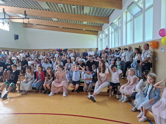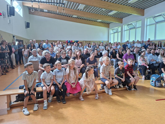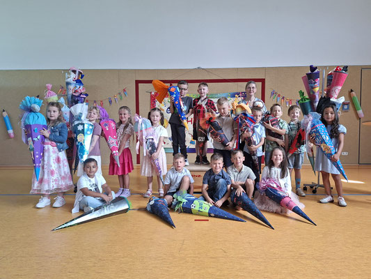 Bei strahlendem Sonnenschein hieß die Schulgemeinschaft unsere neuen Erstklässler willkommen. Der besondere Tag begann mit einem gemeinsamen Gottesdienst und einer ersten Unterrichtsstunde bei den Klassenlehrerinnen Frau Litz (1a) und Frau Barth (1b). Anschließend präsentierten sich die frischgebackenen Schulkinder als Klassenverband bei der Begrüßungsfeier in der festlich geschmückten Mehrzweckhalle.