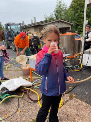 Am Ende des Tages war klar: So ein Ausflug macht nicht nur schlau, sondern auch glücklich und satt. Und alle konnten stolz sagen: Diesen Apfelsaft haben wir selbst gemacht!
